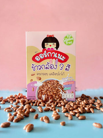 ออร์กาเนะโกโก้คริสป์ ข้าวสามสีอบกรอบ เคลือบโกโก้แท้ กรอบๆ ใหม่ๆจากเตา ไม่ทอด ไม่ใส่ผงชูรส หยิบกินเล่น เคี้ยวเพลิน ราดนมยิ่งอร่อย เป็นมื้อเช้าคุณภาพ