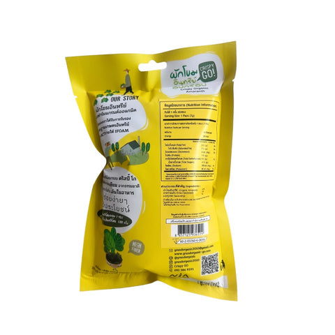 “It started as an organic farm that received IFOAM certification, then took organic spinach from the farm and processed it to meet the needs of children. Who doesn't like to eat vegetables? Crispy GO organic spinach snacks can be eaten as snacks. Or it's good to cook and add to food. High in fiber and calcium It's a snack that can be eaten anywhere, anytime. It's quality and comes in a tight package. Eat it and get the benefits of organic spinach.