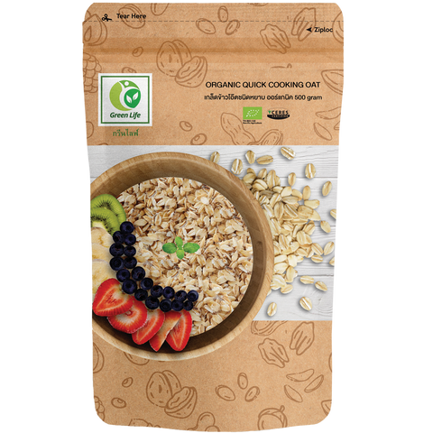 Green Life Organic Quick Cooking Oats เกล็ดข้าวโอ๊ตบด (500gm)