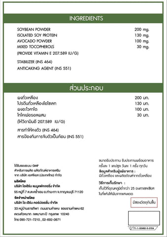 Thai Registration FDA No. : 71-1-02462-5-0104
