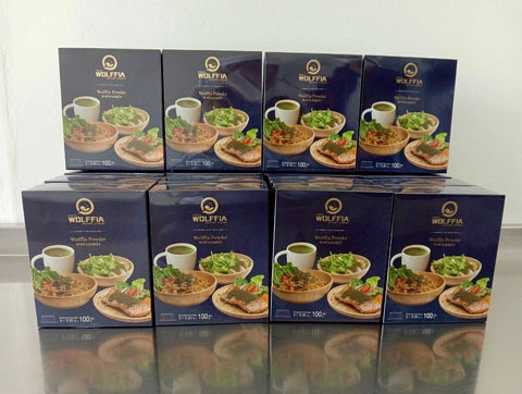 - Wolffia Fine Grind Powder : Use to brew and drink. You can brew with warm or cold water. Use as a tea substitute. Can be paired with cookies and other types of snacks to the body. High in protein, iron, calcium, zinc, vitamin B12 which helps the brain and nervous system function, vitamin A which helps nourish the eyes, vitamin B complex which is high in fiber which helps with the digestive system. It has a low calorie, sugar and fat content, making it suitable for gaining weight.