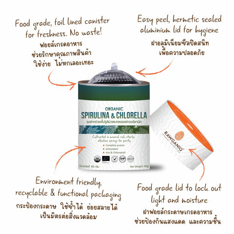 Rawganiq Organic Spirulina & Chlorella Powder ผงสาหร่ายสไปรูลิน่าและคลอเรลลาออร์แกนิค (100g)