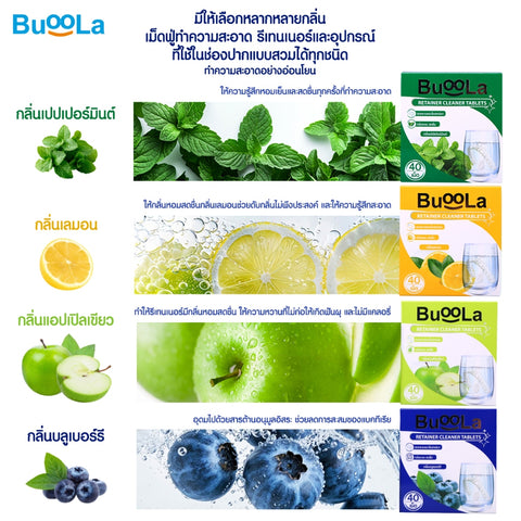 Buoola บูโอล่า เม็ดฟู่ทำความสะอาดรีเทนเนอร์ Retainer Cleaner Tablets (Effervescent Tablets) (40 Tablets)