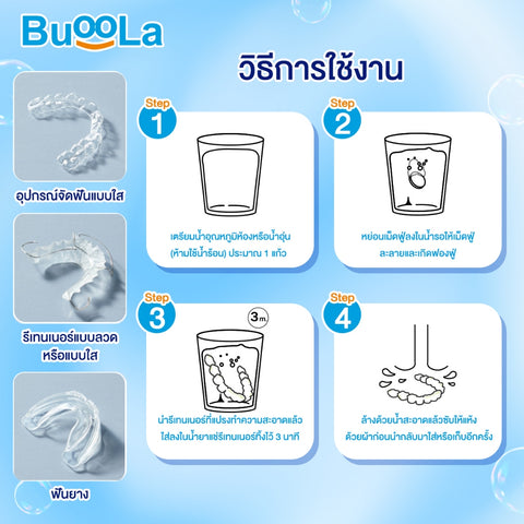 Buoola Retainer Cleaner Tablets (Effervescent Tablets) บูโอล่า เม็ดฟู่ทำความสะอาดรีเทนเนอร์ (40 Tablets)