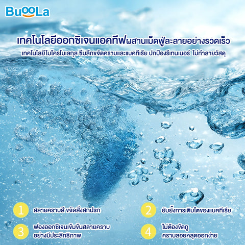 ➦ Sodium Carbonate Peroxide (โซเดียมคาร์บอเนตเปอร์ออกไซด์) ช่วยขจัดคราบสิ่งสกปรกที่เกาะบนอุปกรณ์ให้หลุดออกได้ง่าย