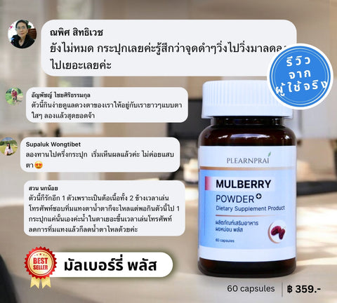 Plearnprai Organic เพลินไพร ออร์แกนิค ผลิตภัณฑ์เสริมอาหาร ผงหม่อน พลัส Mulberry Powder Plus+ (60 Capsules)