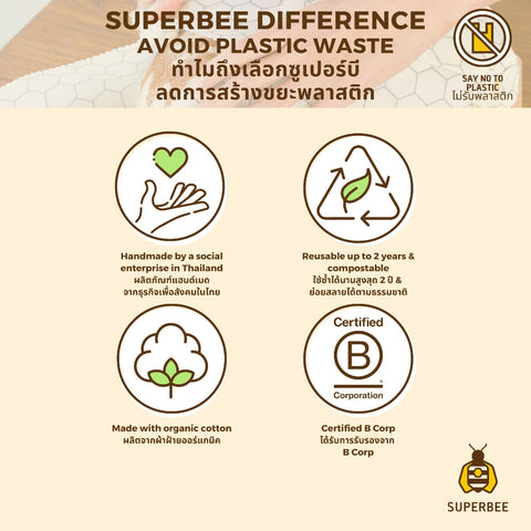 เมื่อ ถุงอาหารกลางวันที่ย่อยสลายได้ทางชีวภาพและย่อยสลายได้เองตามธรรมชาติ เหล่านี้หมดอายุใช้งานแล้ว ก็จะกลับคืนสู่โลกอย่างปลอดภัย การเลือกถุงใส่อาหารเคลือบแว็กซ์ SuperBee จะช่วยให้คุณลดขยะ หลีกเลี่ยงพลาสติกอันตราย และเป็นทางเลือกที่ดีต่อทั้งครอบครัวและโลก