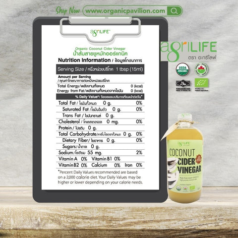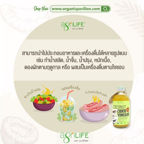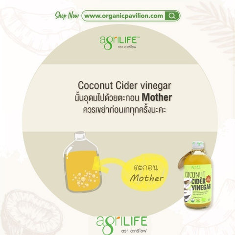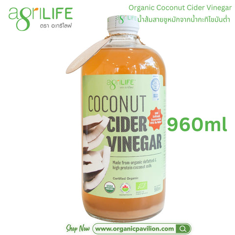 AgriLife 100 % Coconut Cider Vinegar (240ml, 480ml, 960ml) ตราอะกรีไลฟ์ น้ำส้มสายชูหมักจากน้ำกะทิไขมันต่ำ