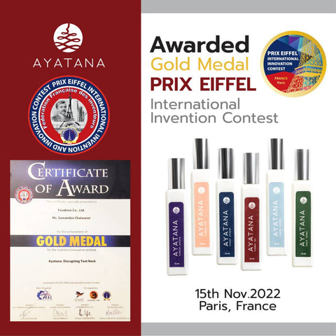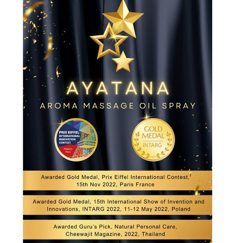 นวัตกรรมอโรม่าเสปรย์ คลายปวด คลายเครียด พิชิตออฟฟิศซินโดรม มึส่วนผสมของไพล ไขชะมดเช็ด เมนทอล และน้ำมันหอมระเหยที่ช่วยให้เกิดความผ่อนคลาย บรรเทาอาการคัดจมูก