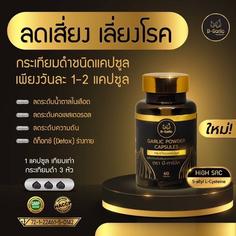 B-Garlic บี กาลิค ผลิตภัณฑ์เสริมอาหาร กระเทียมดำแคปซูล Garlic Powder Capsules Dietary Supplement Product (30 Caps or 60 Caps)