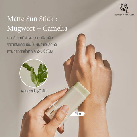 Beauty of Joseon Matte Sun Stick : Mugwort + Camelia SPF50+ PA++++ (18g) บิวตี้ ออฟ โชซอน แมตต์ ซัน สติ๊ก มักเวิร์ด + คามิเล