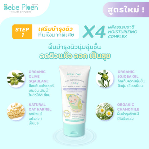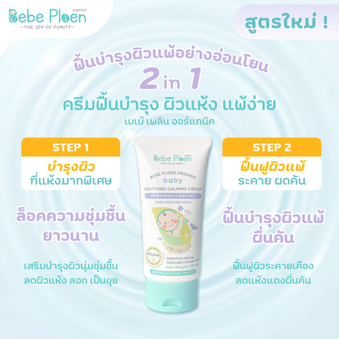 Bebe Ploen Organic Soothing Calming Cream เบเบ้ เพลิน ออร์แกนิค ครีมทาผิวสำหรับลูกน้อย (50 ml)