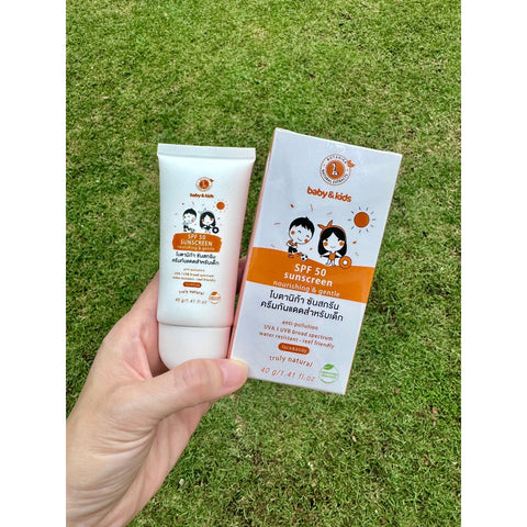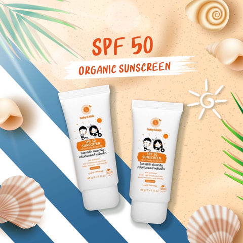 ครีมกันแดดสำหรับเด็ก SPF50 สูตรออร์แกนิค พร้อมบำรุงผิว เนื้อบางเบา ทาหน้าได้ ล้างออกง่าย