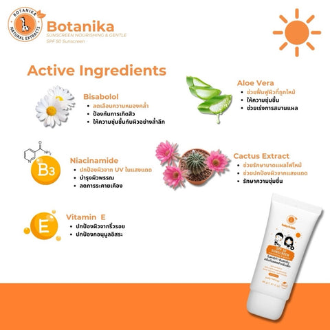 - อ่อนโยนต่อผิวเด็ก สามารถใช้ได้ทุกวันเพื่อบำรุงผิวหน้า ปราศจากสารกันแดดแบบเคมี ไม่ระคายเคืองผิว ไม่ทำร้ายปะกำรัง