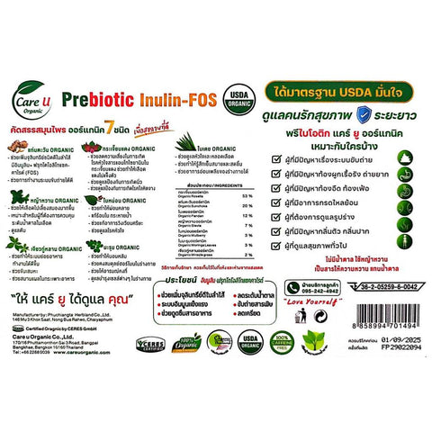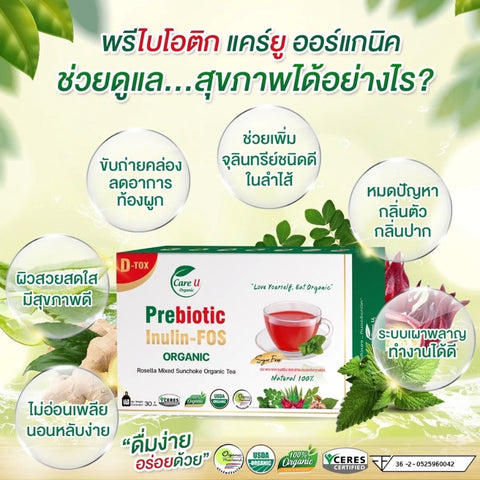 Care U Organic แคร์ยู ออร์แกนิค พรีไบโอติก (แก้ท้องผูก) Prebiotic Organic (30g x 15 Sachets)