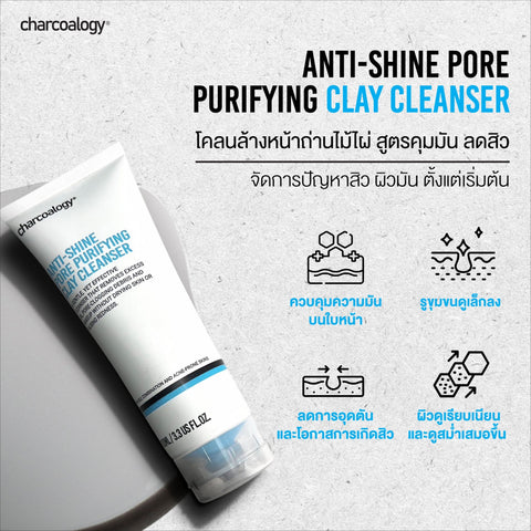 Charcoalogy Anti-Shine Pore Purifying Clay Cleanser 100 ml.