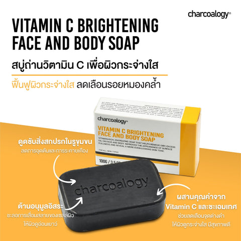 Charcoalogy Vitamin C Brightening Face and Body Bar Soap (100g) ชาร์โคโลจีสบู่ถ่านไม้ไผ่ สูตรผิวกระจ่างใส