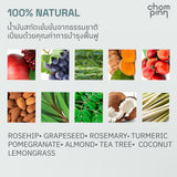 ส่วนผสมหลักcoconut extra virgin oil, rosehip extra virgin oil, moringa seed oil, grapeseed oil, almond oil, pomegranate virgin oil, tea tree essential oil, lemongrass essential oil, rosemary essential oil, turmeric root essential oil