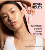 Step 1 Prevent : มีส่วนผสมของ photostable CHEMICAL FILTERS และ titanium dioxide ซึ่งเป็น PHYSICAL FILTERS โดยปราศจาก NANO technologies, octocrylene, oxybenzone และ octinoxate ปกป้องผิวจากการถูกกระตุ้นโดยแสงแดดให้สร้างเมลานิน และลดเลือนจุดด่างดำให้แลดูจางลง