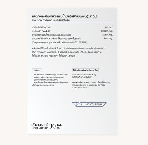Diip ผลิตภัณฑ์เสริมอาหาร ซี.บี.ดี ผสมน้ำมันเอ็มซีทีเเบบหยด สูตรทุกเวลา C.B.D Oil Plus MCT Oil Dropper - Daily Oil (30ml)