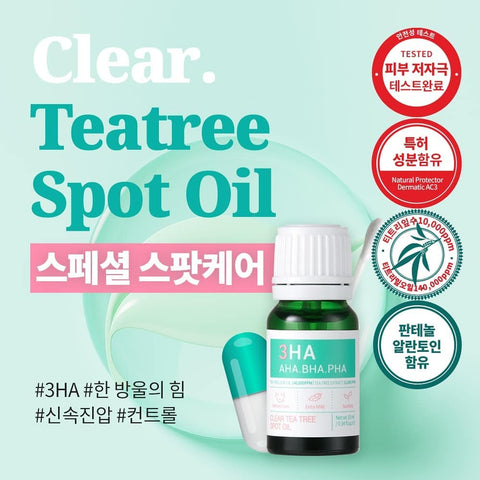 น้ำมันที ทรี เข้มข้น สำหรับแต้มสิว ช่วยลดโอกาสในการเกิดสิวใหม่ ลดสาเหตุของการเกิดสิว ด้วยสารกัดจากธรรมชาติ แก้ไขปัญหาสิวอักเสบได้อย่างรวจเร็วและตรงจุดสิวยุบภายใน 24 ชั่วโมง ส่วนผสมประกอบด้วย AHA, BHA และ PHA ที่ช่วยขัดผิวของคุณอย่างอ่อนโยนและปกป้องชั้นความชุ่มชื้นและ Tea Tree Oil และ Tea Tree Extract ที่มีความเข้มข้นสูงให้กับผิวมอบความชุ่มชื้นให้ผิวนุ่มด้วย Panthenol และ Allantoin อีกด้วย