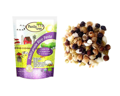 Family Tree 100 % Organic Multi-Grain Rice Pasta Shell มะกะโรนีข้าว 5 สี ชนิดเชลล์ออร์แกนิก 100 % (350gm)