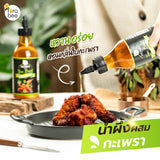 หยดน้ำผึ้งผสมกะเพรา ลงในอาหารที่เตรียมไว้ หรือทำเป็นน้ำจิ้มทานคู่กับ พิซซ่า ไก่ทอด ฯลฯ
