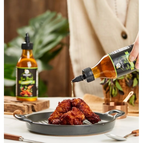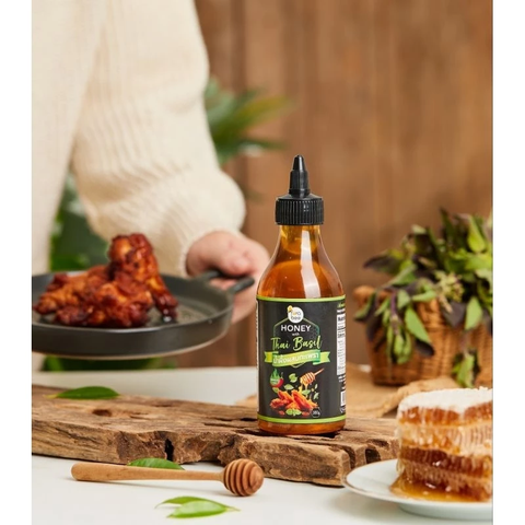 This honey with Basil is a combination of Thai wildflower honey and Thai Basil. It creates a sweetness with a hint of basil aroma. Use as a dip or spread on fried chicken, pizza or cheese