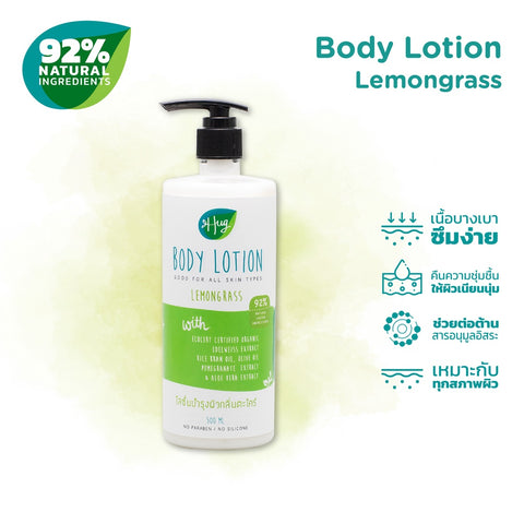 Hug ฮัก โลชั่นบำรุงผิว ออร์แกรนิค กลิ่นตะไคร้ Body Lotion Lemongrass (500 ml)