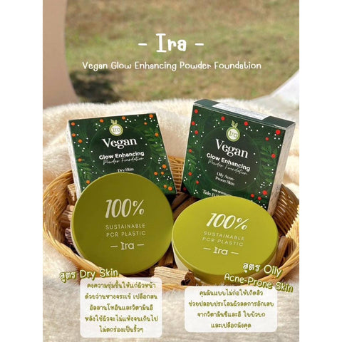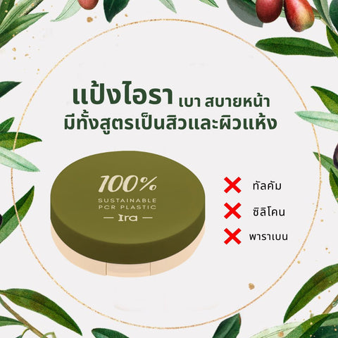 ปลอบประโลมผิวเป็นสิว ผิวแพ้ง่ายอย่างเป็นธรรมชาติด้วยแป้งพัฟไอราสูตร แอคเน่-พรอน สกินจากสารสกัดธรรมชาติ อาทิ สารสกัดใบบัวบก สารสกัดเปลือกมังคุด และวิตามินซี นอกจากนั้นยังช่วยให้ผิวหน้าของคุณผ่อง เนียน แต่บางเบาอีกด้วย ไอรา โกลว์ เอนฮานซิ่ง พาวเดอร์ ฟาวน์เดชั่น ออยลี่ แอคเน่-พรอน สกินถูกพัฒนาขึ้นโดยผู้เชี่ยวชาญโดยเฉพาะสำหรับผิวเป็นสิว อักเสบและแดงเพื่อไม่ก่อให้เกิดสิวและการอุดตันเพิ่มเติม ทั้งยังผ่านการทดสอบทางแพทย์ผิวหนังแล้วว่าไม่ก่อให้เกิดการระคายเคือง แป้งพัฟของเรายังไม่มีส่วนผสมจากทัลคัม ซิลิโคน น้ำมันแร่และส่วนผสมอื่นๆที่อาจก่อให้เกิดการระคายเคืองในอนาคตได้อีกด้วย