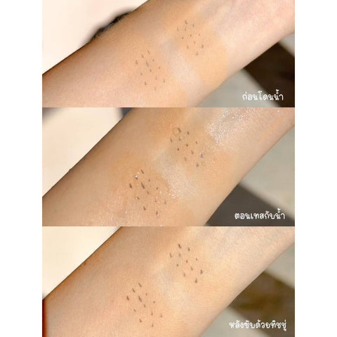 ส่วนผสม : ALUMINUM STARCH OCTENYLSUCCINATE, SERICITE, TITANIUM DIOXIDE, NYLON-12, POLYMETHYL METHACRYLATE, CI 77492, SILICA, ETHYLHEXYL PALMITATE, MAGNESIUM STEARATE, AVENA SATIVA KERNEL FLOUR, TRIETHYLHEXANOIN, DIISOSTEARYL MALATE, PHENOXYETHANOL, CI 77491,TOCOPHERYL ACETATE, ETHYLHEXYLGLYCERIN, MORINGA OLEIFERA SEED OIL, HELIANTHUS ANNUUS SEED OIL, CENTELLA ASIATICA EXTRACT, GARCINIA MANGOSTANA PEEL EXTRACT, CI 77499, ASCORBYL PALMITATE