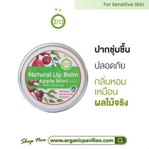 Ira Natural Lip Balm ไอรา ลิปบาล์ม กลิ่นแอปเปิ้ล & มิ้นต์ Apple & Mint Flavored (10g)