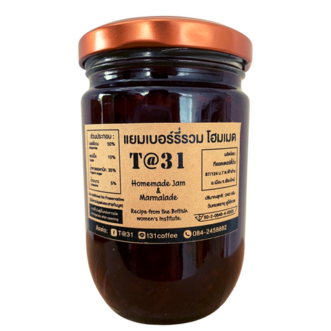 Jam made with 5 different berries: strawberry, cranberry, blackberry, blueberry, and raspberry, pasteurized in a glass jar. Original recipe from England that emphasizes the true naturalness of the real fruit. The color of the jam comes from the fruits itself; fragrant, sweet, delicious, and refreshing with a full jar of fresh fruit pulp. No pectin powder, no gelatin powder, and no preservatives. Can be stored for 1 year unopened and keeps for 4 months in the refrigerator after opening.