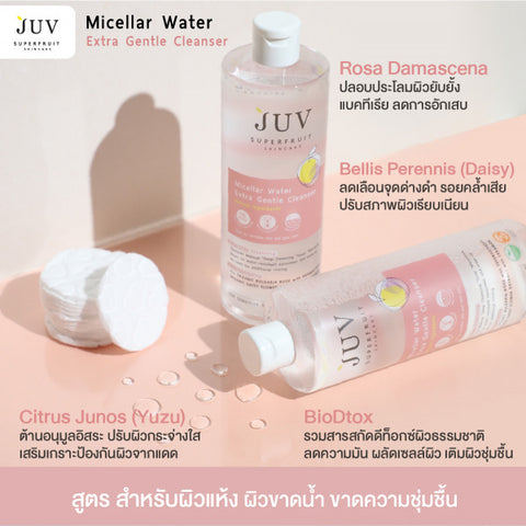 JUV Micellar Water Extra Gentle Cleanser จุ๊ฟ ไมเซลล่า วอเตอร์ เอ็กตร้า เจนเทิล คลีนเซอร์ (สำหรับผิวแพ้ง่าย ผิวบอบบาง ระคายเคืองง่าย) (500 ml)