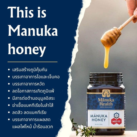 น้ำผึ้งมานูก้า Manuka Health อุดมไปด้วยสารต้านอนุมูลอิสระมากกว่าน้ำผึ้งประเภทอื่น มีคุณสมบัติในการกระตุ้นระบบภูมิคุ้มกันของร่างกาย และใช้ในการรักษาและบรรเทาอาการได้หลากหลาย