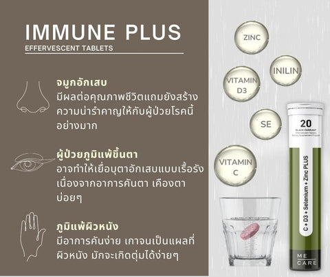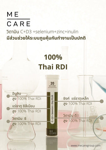 ME CARE ผลิตภัณฑ์เสริมอาหาร ซี+ดี3+ซีลีเนี่ยม+ซิงค์ พลัส Immune Plus C+D3+Selenium+Zinc PLUS Dietary Supplement Product (20 Tablets)
