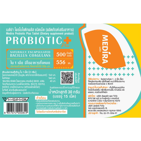 Medira เมดิร่า โพรไบโอติกพลัส Probiotics Plus (15 Tablets x 30g)