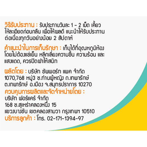 *เพื่อให้ผลดีแนะนำให้รับประทานวันละ 1-2 เม็ด ติดต่อกันอย่างน้อย 2 สัปดาห์