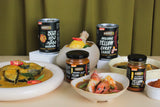 Yellow Curry Sauce : Green Chili 18.6%, Turmeric 17.4%, Shallot 16.4%, Garlic 12.9%, Dried Red Chili 9.9%, Lemongrass 8.7%, Galangal 7.1%, Coconut Vinegar 4.6%, Salt 4.4%
