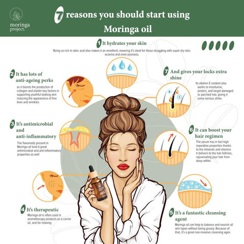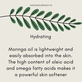 Moringa seed oil is 100% natural, this means no chemicals, no preservative, no parabens, is vegan and cruelty-free… No Nasties, Just Goodness! Our Moringa Project Facial Oil is boosted with Vitamin E for added benefits.
