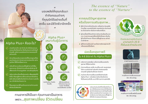 เครื่องดื่มข้าวสกัด แอลฟ่า พลัส เป็นอาหารอาหารเสริมตามหลักฟังก์ชั่นนอลเมดิซีน (Functional Medicine) โดยมีความเป็นธรรมชาติ 100% ไม่มีการแต่งกลิ่น หรือ ปรุงรสใดๆ สารแอลฟ่าอีพีเอชในสินค้านี้เป็นสารที่ได้มีการจดสิทธิบัตรระดับนานาชาติ ได้ขึ้นทะเบียนอาหารและยาอย่างถูกต้อง ได้รับการสนับสนุนจาก สำนักงานนวัตกรรมกรรมแห่งชาติ กระทรวงวิทยาศาสตร์ จัดจำหน่ายไปทั่วโลกกว่า 100 ประเทศ มานาน 15 ปี มีงานวิจัยรองรับอย่างถูกต้อง จาก โรงพยาบาลพระมงกุฎร่วมกับ มหาวิทยาลัยเอมมอรี่ประเทศสหรัฐอเมริกา (Emory State University) ซึ่งเป็นมหาวิทยาลัยของรัฐ ที่มีความโดดเด่นทางด้านงานวิจัยทางวิทยาศาสตร์สุขภาพ และล่าสุดมีการทำวิจัยการวัดความสัมฤทธิ์ผลแอลฟ่าจาก วิทยาลัยสาธารณสุขสิรินธร แผนแพทย์ทางเลือกและแพทย์แผนไทย ซึ่งงานวิจัยทั้งสองต่างได้ยืนยันว่า สารแอลฟ่า อีพีเอชให้ผลต่อสุขภาพในทางที่ดี สามารถดูแลฟื้นฟูสุขภาพองค์รวม ปรับสมดุลในร่างกาย เสริมการรักษาของแพทย์สำหรับผู้ป่วยโรคเรื้อรัง ทั้งนี้ไม่รวมตัวอย่างผู้ใช้สินค้าจำนวนมากจากทั่วโลกที่ได้รับประสบการณ์ด้านสุขภาพจาก แอลฟ่า พลัส