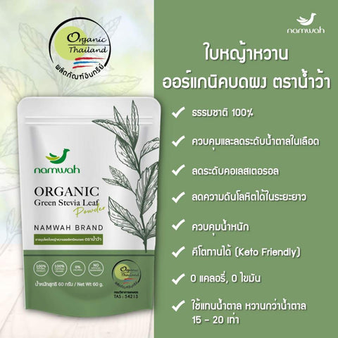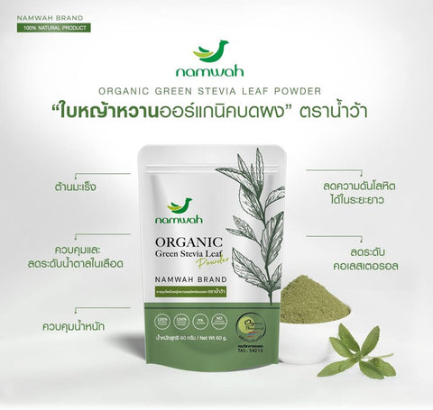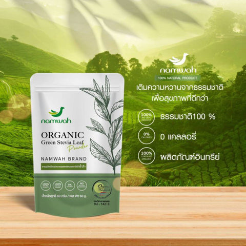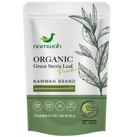 Namwah Organic Green Stevia Powder ใบหญ้าหวานออร์แกนิคบดผง ตราน้ำว้า (60g)