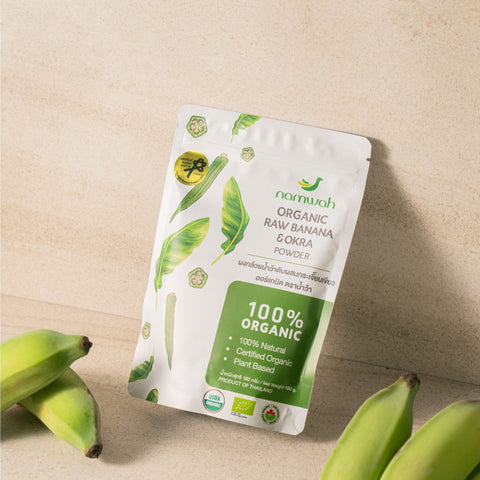 Namwah ผงกล้วยน้ำว้าดิบผสมกระเจี๊ยบเขียวออร์แกนิค แบบพกพา ตราน้ำว้า Organic Raw Banana & Okra Powder (ToGo) (14 x 6g)
