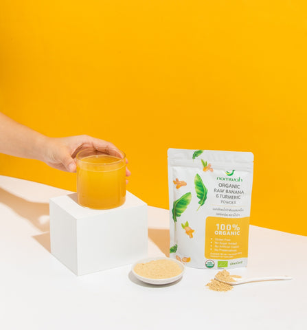 วิธีการทานผงกล้วยน้ำว้าดิบผสมขมิ้นออร์แกนิคตราน้ำว้า :