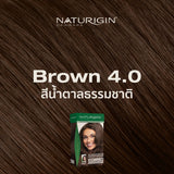 NATURIGIN Brown 4.0 เปลี่ยนสีผมให้เป็นสีน้ำตาลธรรมชาติ ครีมเปลี่ยนสีผมที่ได้รับการพัฒนาสูตรด้วยเทคโนโลยีทันสมัย โดดเด่นด้วยส่วนผสมออร์แกนิคจากเลมอนและเอสเซนเชียลออยล์จากส้มแมนดาริน และเสริมด้วยสารสกัดออร์แกนิคบริสุทธิ์และน้ำมันสกัดจากพืชธรรมชาติอีก 10 ชนิด เพื่อทำหน้าที่ปกป้องบำรุงเส้นผมระหว่างการทำสีและเพิ่มความเงางาม เป็นสูตรที่ปราศจากแอมโมเนีย, ปราศจากพาราเบน, ปราศจากสารเรซอซินอล และ ปราศจากสาร SLS สามารถปิดผมขาวได้ 100%