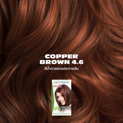 NATURIGIN Copper Brown 4.6 เปลี่ยนสีผมให้เป็นสีน้ำตาลคอปเปอร์ที่มีเม็ดสีแดงส้ม ให้ผลลัพธ์สีน้ำตาลในวอร์มโทนที่อบอุ่น ครีมเปลี่ยนสีผมที่ได้รับการพัฒนาสูตรด้วยเทคโนโลยีทันสมัย โดดเด่นด้วยส่วนผสมออร์แกนิคจากเลมอนและเอสเซนเชียลออยล์จากส้มแมนดาริน และเสริมด้วยสารสกัดออร์แกนิคบริสุทธิ์และน้ำมันสกัดจากพืชธรรมชาติอีก 10 ชนิด เพื่อทำหน้าที่ปกป้องบำรุงเส้นผมระหว่างการทำสีและเพิ่มความเงางาม เป็นสูตรที่ปราศจากแอมโมเนีย, ปราศจากพาราเบน, ปราศจากสารเรซอซินอล และ ปราศจากสาร SLS สามารถปิดผมขาวได้ 100%
