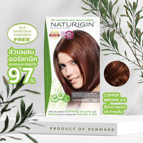 Naturigin 4.6 Copper Brown Permanent Organic Hair Color Dye สีน้ำตาลแดงประกายส้ม สีผมออร์แกนิค นำเข้าจากเดนมาร์ก (115ml)