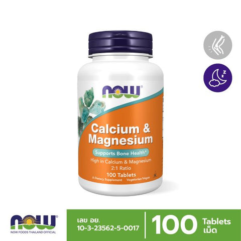 Now Foods ผลิตภัณฑ์เสริมอาหาร แคลเซียม และ แมกนีเซียม Calcium & Magnesium Tablets Dietary Supplement Product (100 Tablets)