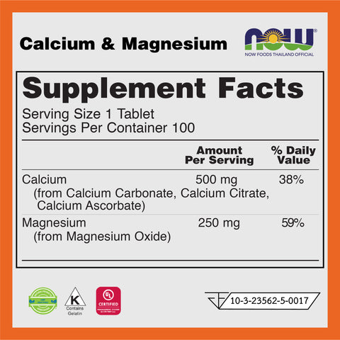 Now Foods Calcium & Magnesium Tablets (100 Tablets) ผลิตภัณฑ์เสริมอาหาร แคลเซียม และ แมกนีเซียม (100 เม็ด)