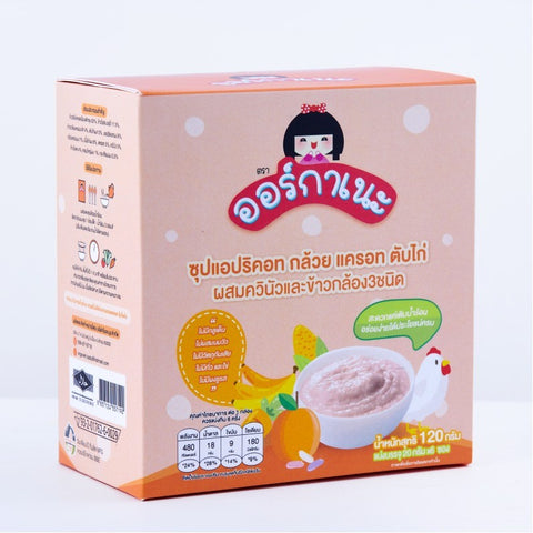 Organeh ซุปแอปริคอท กล้วย แครอท ตับไก่ ผสมควินัวและข้าวกล้อง 3 ชนิด Apricot Soup with Chicken Liver mixed with Quinoa Carrot, Banana and Mixed Gaba Rice (20g x 6 Sachets) (120g)